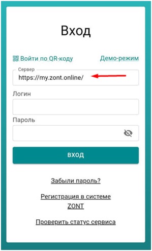 2. В открывшемся поле «Сервер» укажите: https://lk.zont-online.ru