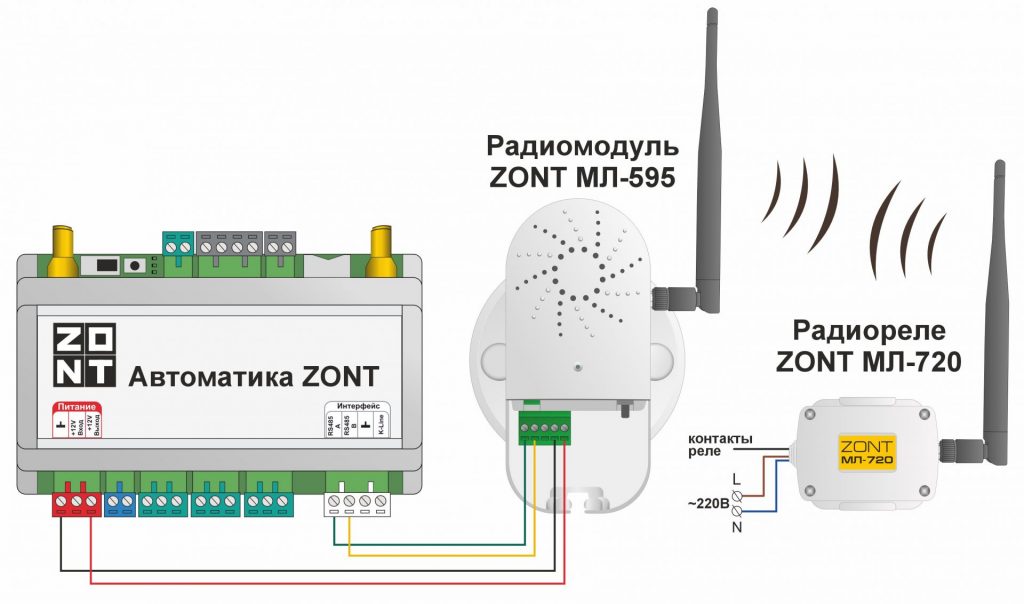 Для подключения радиореле к головному устройству необходим радиомодуль ZONT МЛ-595 или радиомодуль ZONT МЛ-590 в новом корпусе (приобретается отдельно).