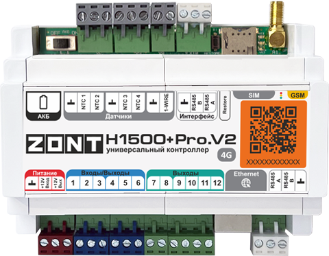 На официальном сайте производителя можно по выгодной цене купить универсальные GSM контроллеры отопления ZONT (Зонт). В нашем каталоге представлено множество моделей: H-1V, SMART 2.0, H2000+Pro, H700+Pro, H1000+Pro и т. д., которые отличаются видом связи, особенностями удаленного управления, принципом подключения к котлу, входами и выходами, количеством насосно-смесительных узлов, ГВС.